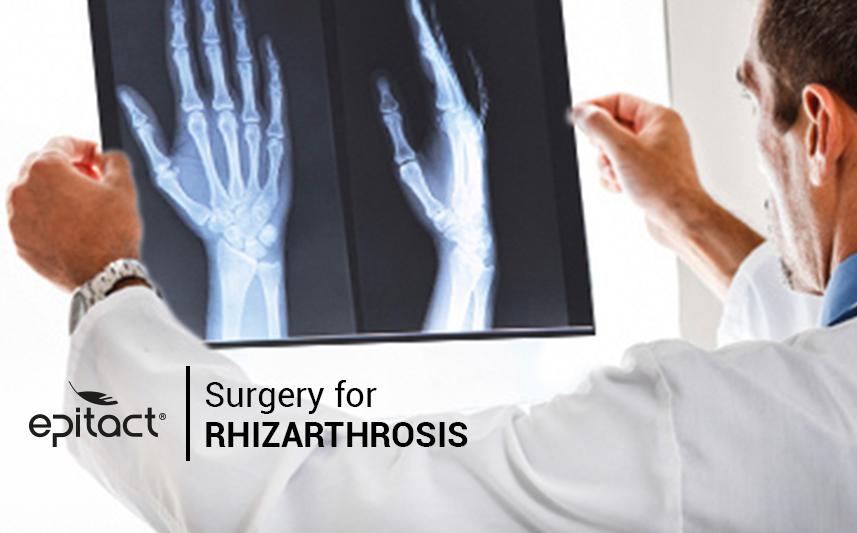 X-ray is used to choose the correct surgical technique: removal of the trapezium or prosthesis. If rhizarthrosis not only affects the trapeziometacarpal joint, a prosthesis is not appropriate. Indeed, if the surrounding joints are also damaged, replacing only one joint won’t save the others. In this case, trapeziectomy (removal of the trapezium bone) is appropriate. If rhizarthrosis only affects the trapeziometacarpal joint, several criteria like age, degree of the deformity and mobility determine the best surgical technique.